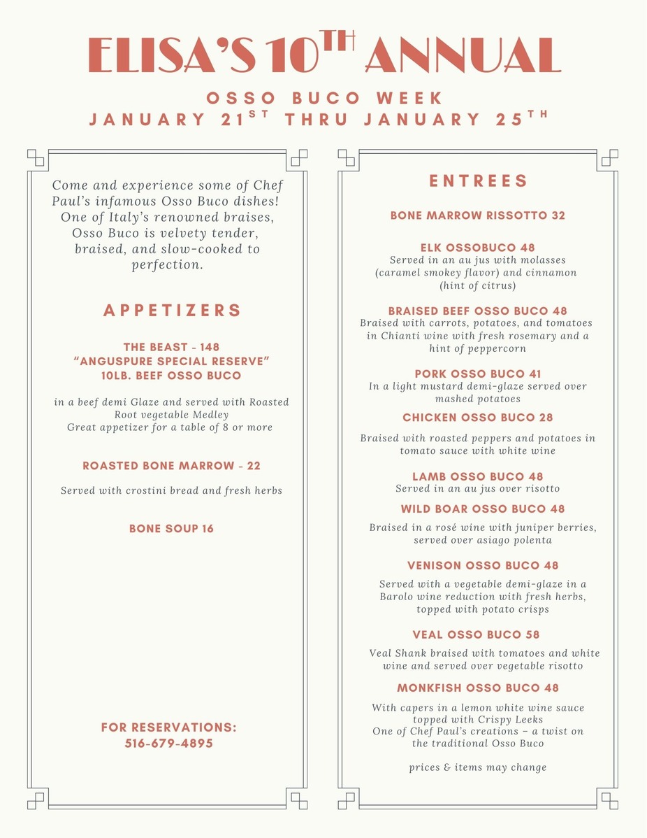 Come and experience some of Chef Paul’s infamous Osso Buco dishes!
