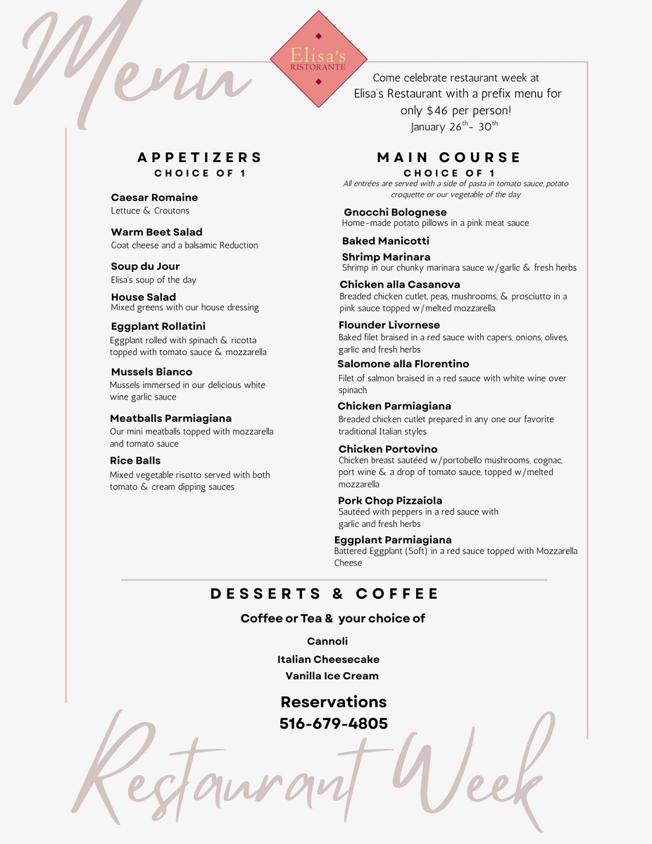 Elisa’s will be offering additional fish and vegetarian dishes in consideration for all of our Lent observing customers.